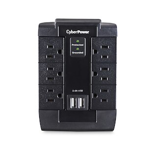 Prevents spikes in energy caused by storms and electrical power surges from reaching your home office equipment such as laptops and small electronics. Provides 1200 joules of protection and 6 AC outlets with a single wall tap plug. Two 2.4 Amp Ports